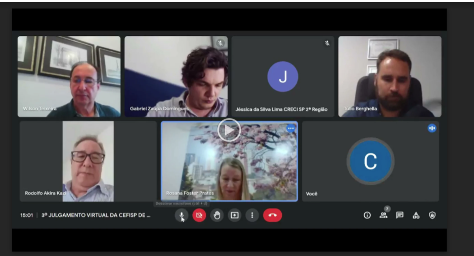 Foi realizada a 3ª sessão de Julgamento Virtual da Cefisp de Presidente Prudente, na ocasião, foram julgados 60 processos disciplinares, referentes à facilitação do exercício ilegal da profissão. Participaram da reunião Wilson Luiz Teixeira, Gabriel Zaupa Domingue, Rodolfo Akira Kazi, Rosana de Angelo Foster Prates e Tulio de Moraes Berghella.