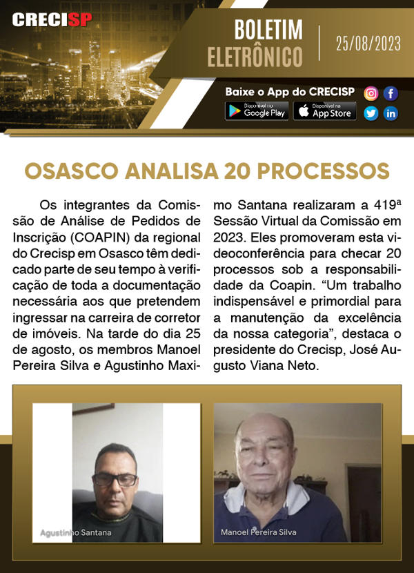 Osasco analisa 20 processos