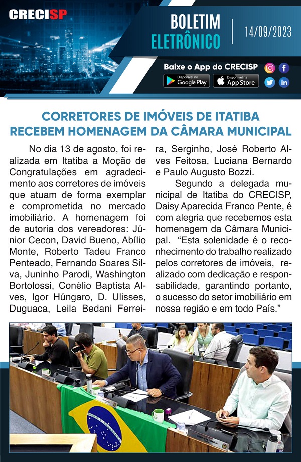 Corretores de Itatiba recebem homenagem da Câmara Municipal