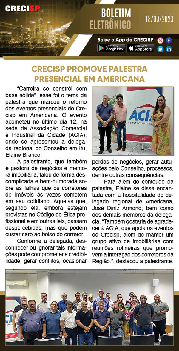 Crecisp promove palestra presencial em Americana