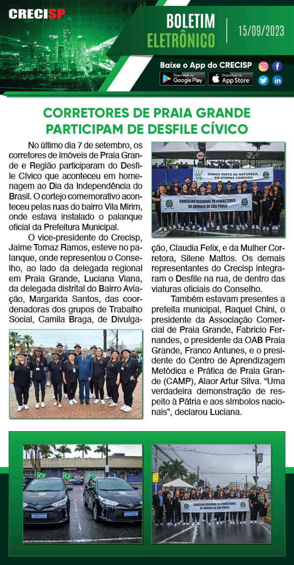 Corretores de Praia Grande participam de Desfile Cívico