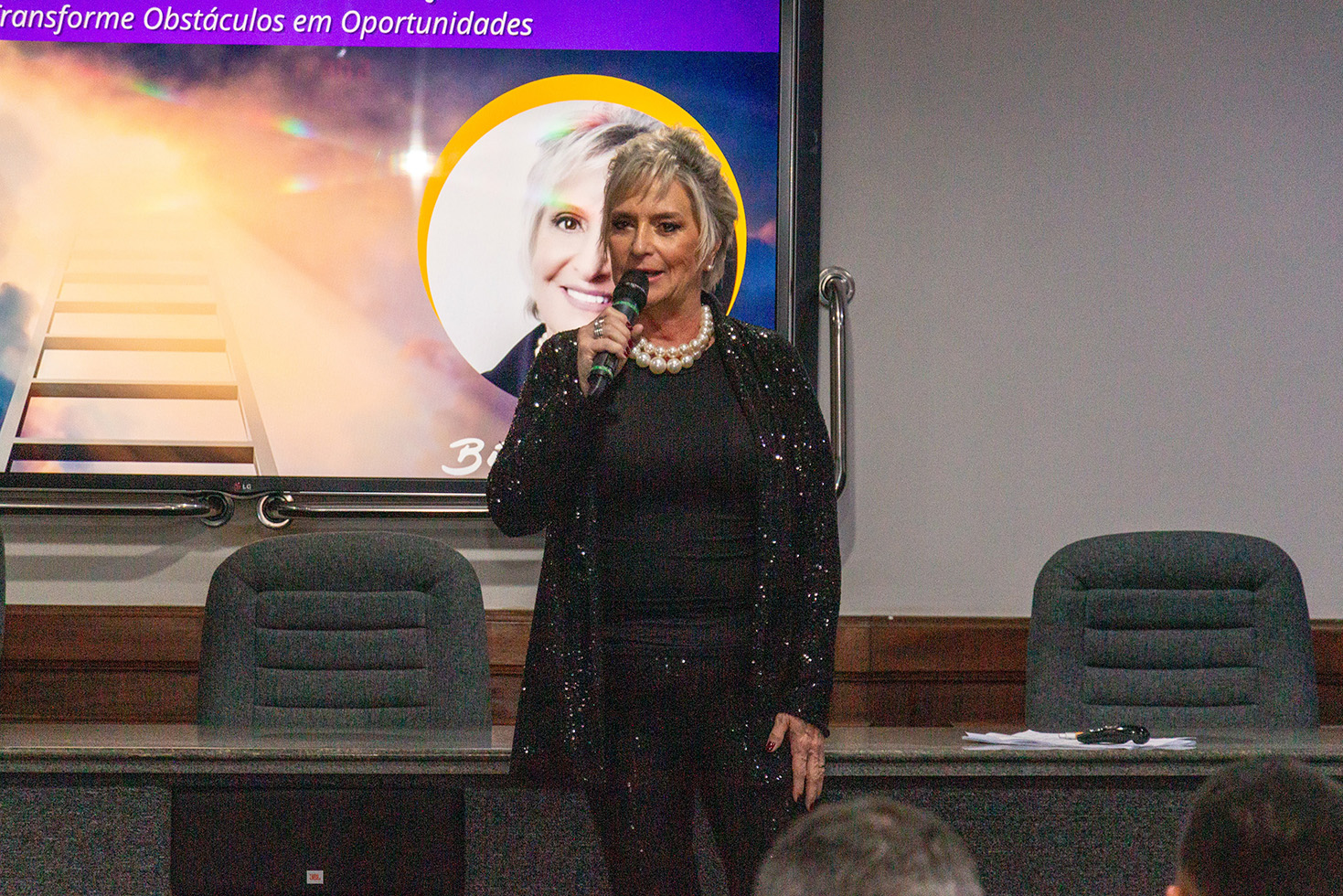 No início da apresentação, a palestrante ressaltou que todos nós possuímos o poder de mudar nossas vidas, fazer, por exemplo, transformações em nossas carreiras, por meio da terapia vibracional. De acordo com essa terapia, o obstáculo, nada mais é do que uma turbulência, e caso não existisse, estaríamos estagnados. “O problema maior não é a objeção, mas as escolhas na direção errada.”