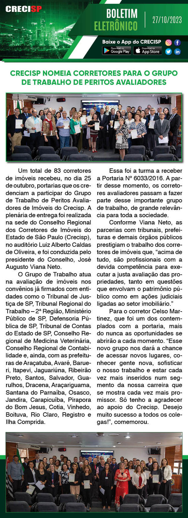 Crecisp nomeia corretores para Grupo de Trabalho de Peritos Avaliadore