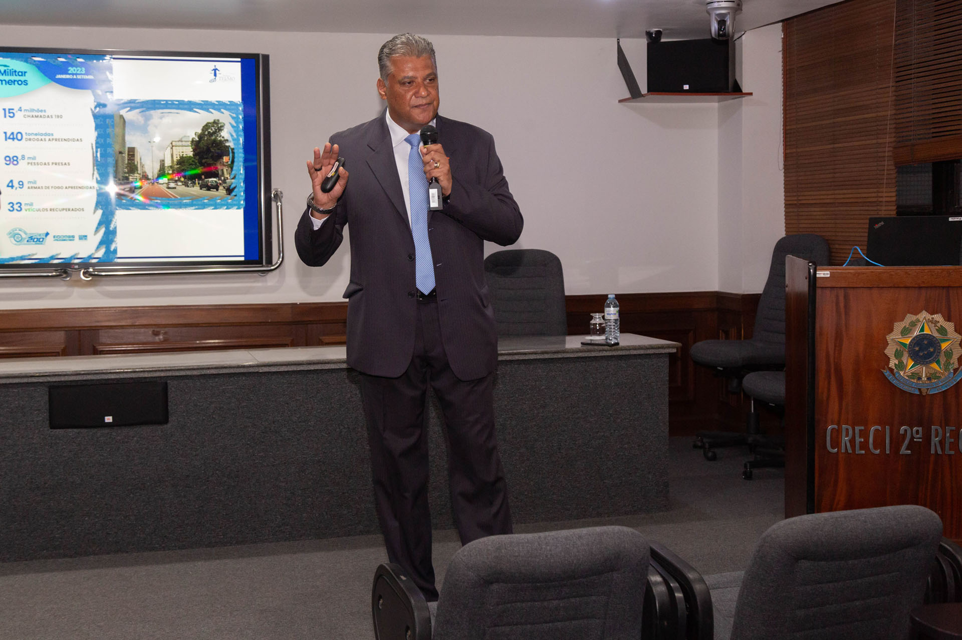 No dia 1 de novembro, o oficial veterano da Polícia Militar, Temístocles Telmo Ferreira Araújo esteve na Quarta Nobre do CRECISP e falou sobre o tema: Rede de Proteção Social frente ao fenômeno da violência urbana.