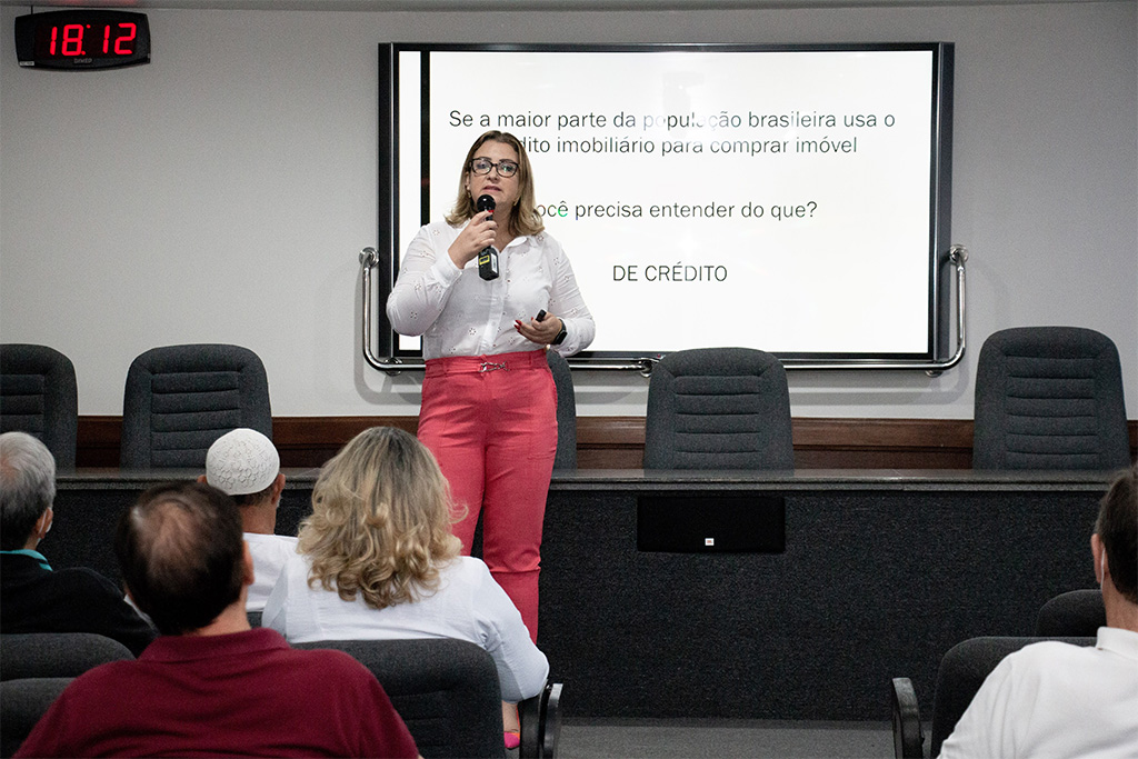 Débora ressaltou no início da sua palestra, que é especializada em crédito imobiliário, e de acordo com sua expertise, muitos clientes, não sabem exatamente o tipo de imóvel que desejam adquirir.