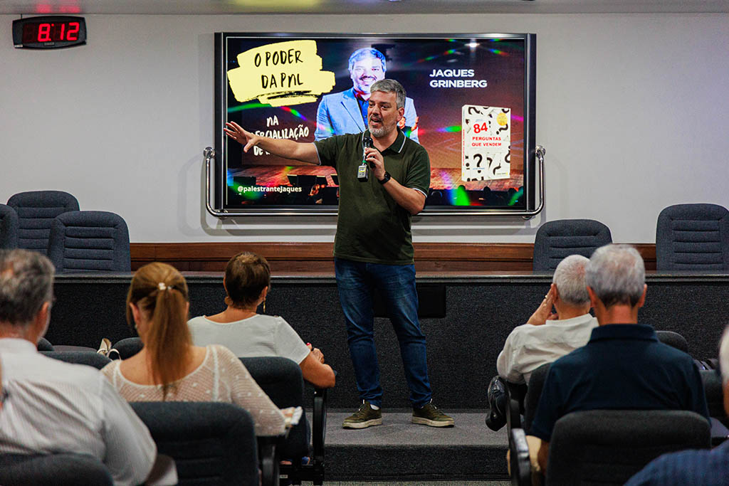 No início da palestra, Grinberg enfatizou que apenas 3% a 7% das pessoas que participam de eventos e palestras, sejam presenciais ou online, realmente colocam em prática as informações que são assimiladas, o que é considerado um número muito baixo.