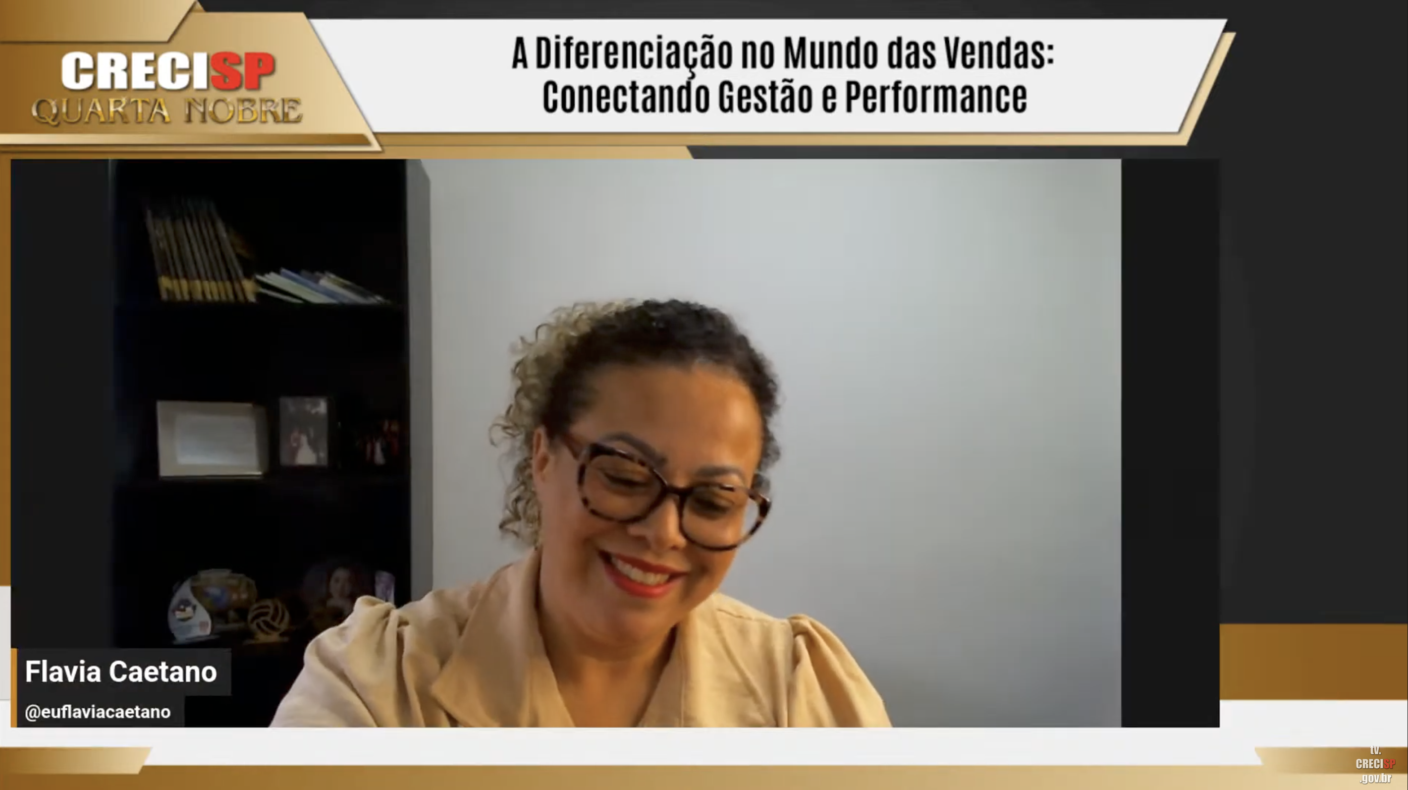 No dia 29 de janeiro, a especialista em gestão e vendas, Flávia Caetano, ministrou uma palestra online na Quarta Nobre do CRECISP, abordando o tema "A Diferenciação no Mundo das Vendas: Conectando Gestão e Performance". Durante o evento, a palestrante destacou como a verdadeira diferenciação no mercado de vendas não se restringe apenas às estratégias de mercado, mas à combinação entre uma gestão eficiente e a busca contínua por alto desempenho.