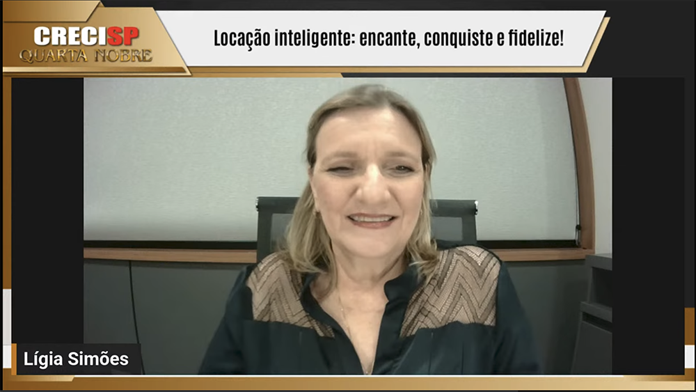 No dia 21 de maio, a corretora de imóveis e gestora de negócios Ligia Simões marcou presença pela primeira vez na Quarta Nobre do CRECISP, trazendo uma reflexão profunda e atual sobre o tema: “Locação inteligente: encante, conquiste e fidelize!”. O evento, transmitido online, reuniu profissionais do mercado imobiliário para discutir os novos rumos da locação de imóveis, com foco na experiência do cliente e na profissionalização do setor.