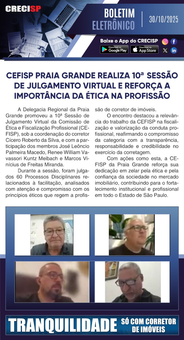 CEFISP Praia Grande realiza 10ª sessão de julgamento virtual