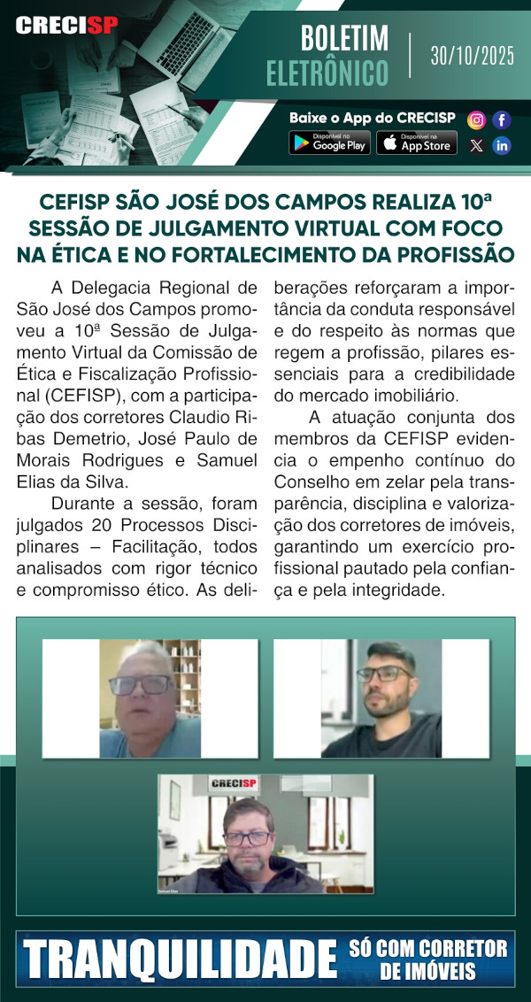 CEFISP São José dos Campos realiza 10ª sessão de julgamento virtual