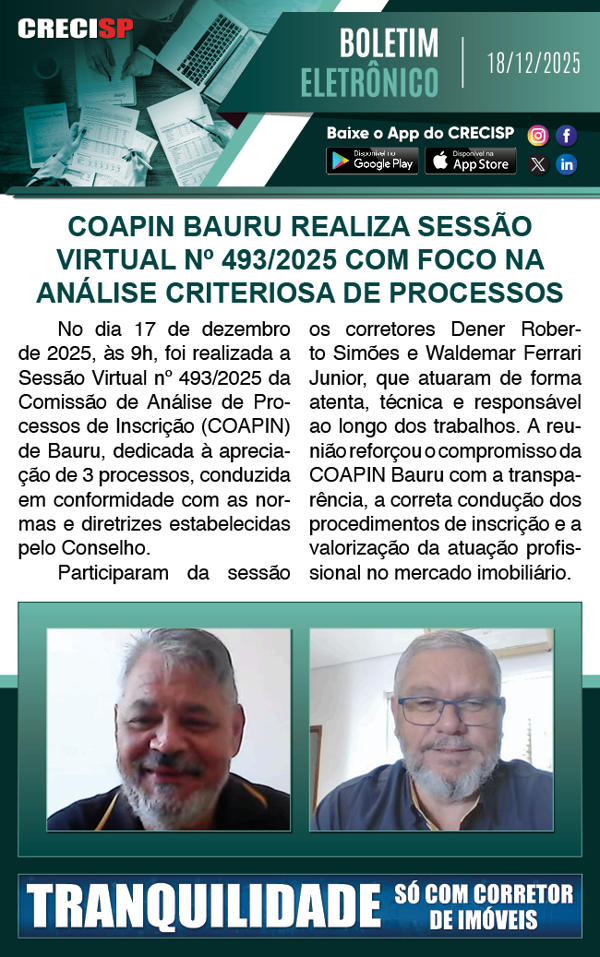COAPIN Bauru realiza sessão virtual Nº 493/2025