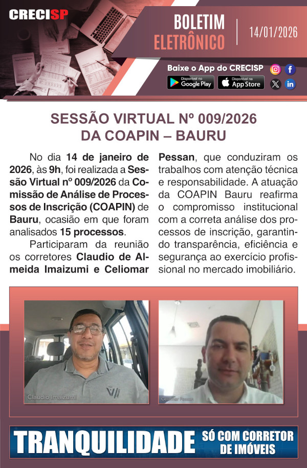 Sessão virtual Nº 009/2026 da COAPIN - Bauru