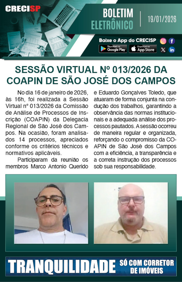 Sessão virtual Nº 013/2026 da COAPIN de São José dos Campos