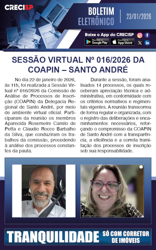 Sessão virtual Nº 016/2026 da COAPIN Santo André