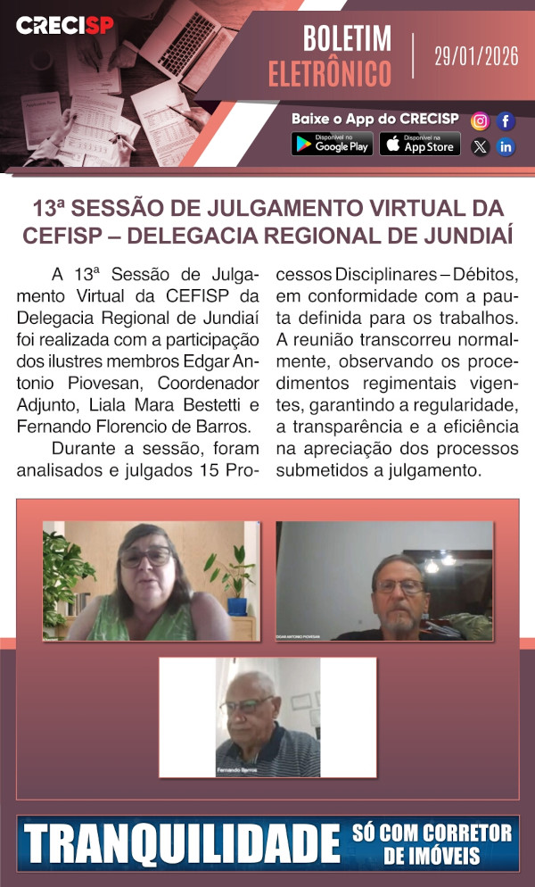 13ª sessão de julgamento virtual da CEFISP de Jundiaí
