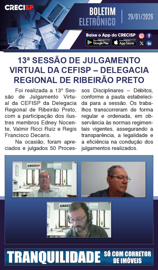 13ª sessão de julgamento virtual da CEFISP de Ribeirão Preto
