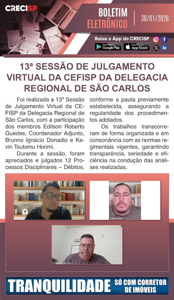 13ª sessão de julgamento virtual da CEFISP de São Carlos