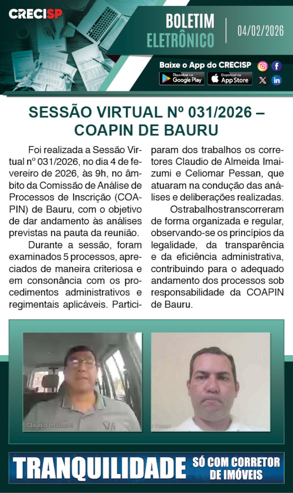 Sessão virtual Nº 031/2026 - COAPIN de Bauru