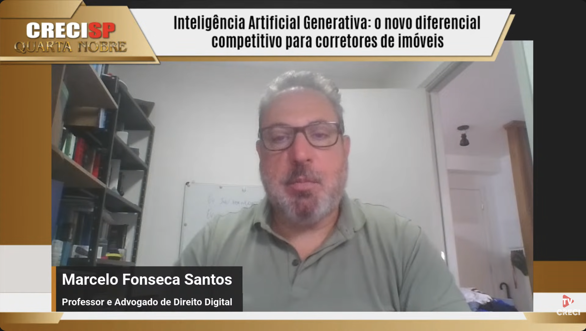 No dia 11 de fevereiro, o doutorando e mestre em Direito Político e Econômico, Marcelo Fonseca Santos, ministrou uma palestra online na Quarta Nobre sobre o tema “Inteligência Artificial Generativa: o novo diferencial competitivo para corretores de imóveis”.