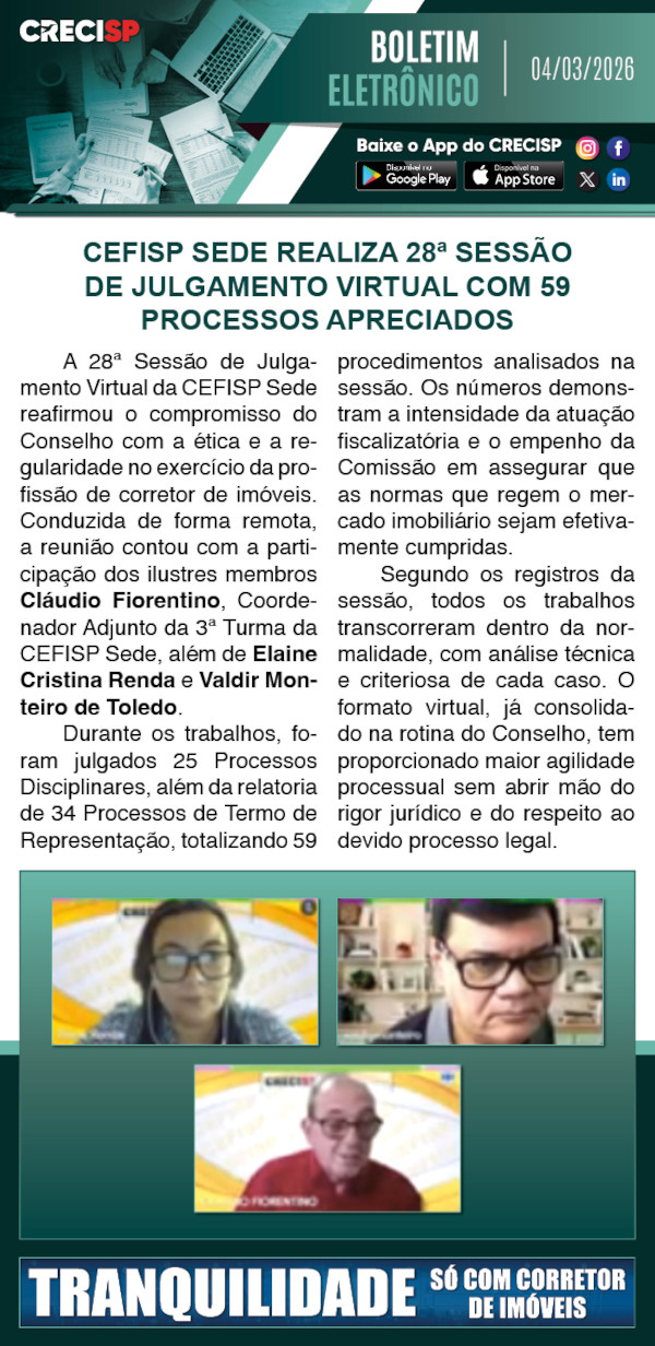 Cefisp Sede realiza 28ª sessão de julgamento virtual