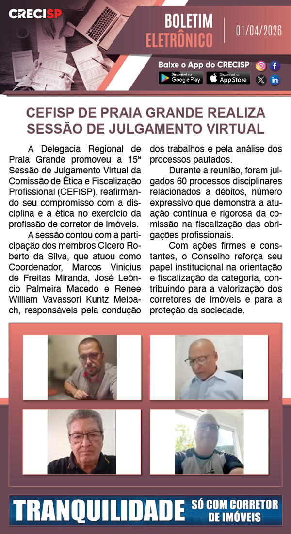 Cefisp de Praia Grande realiza sessão de julgamento virtual