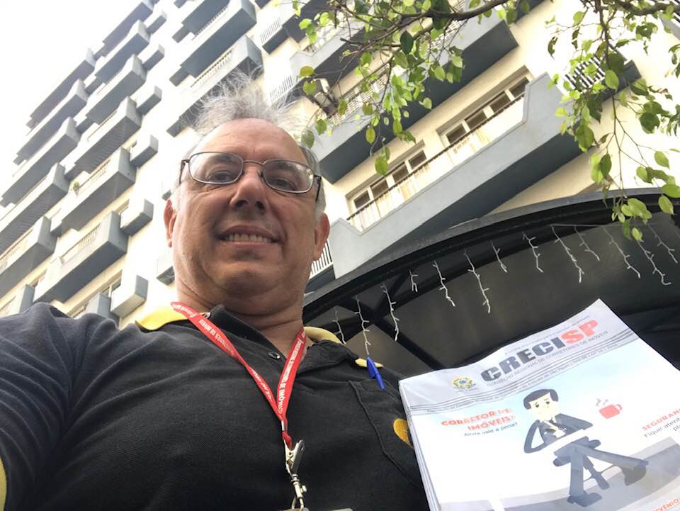 Acompanhado pela corretora Rosana Pires, Clayton conta que também visita condomínios da cidade, explicando a síndicos e zeladores a importância do livro de registros que o CRECISP fornece a esses locais. “Comento sobre a questão da segurança, já que o livro evita que falsos corretores entrem nos condomínios e possam promover assaltos ou outros crimes.”