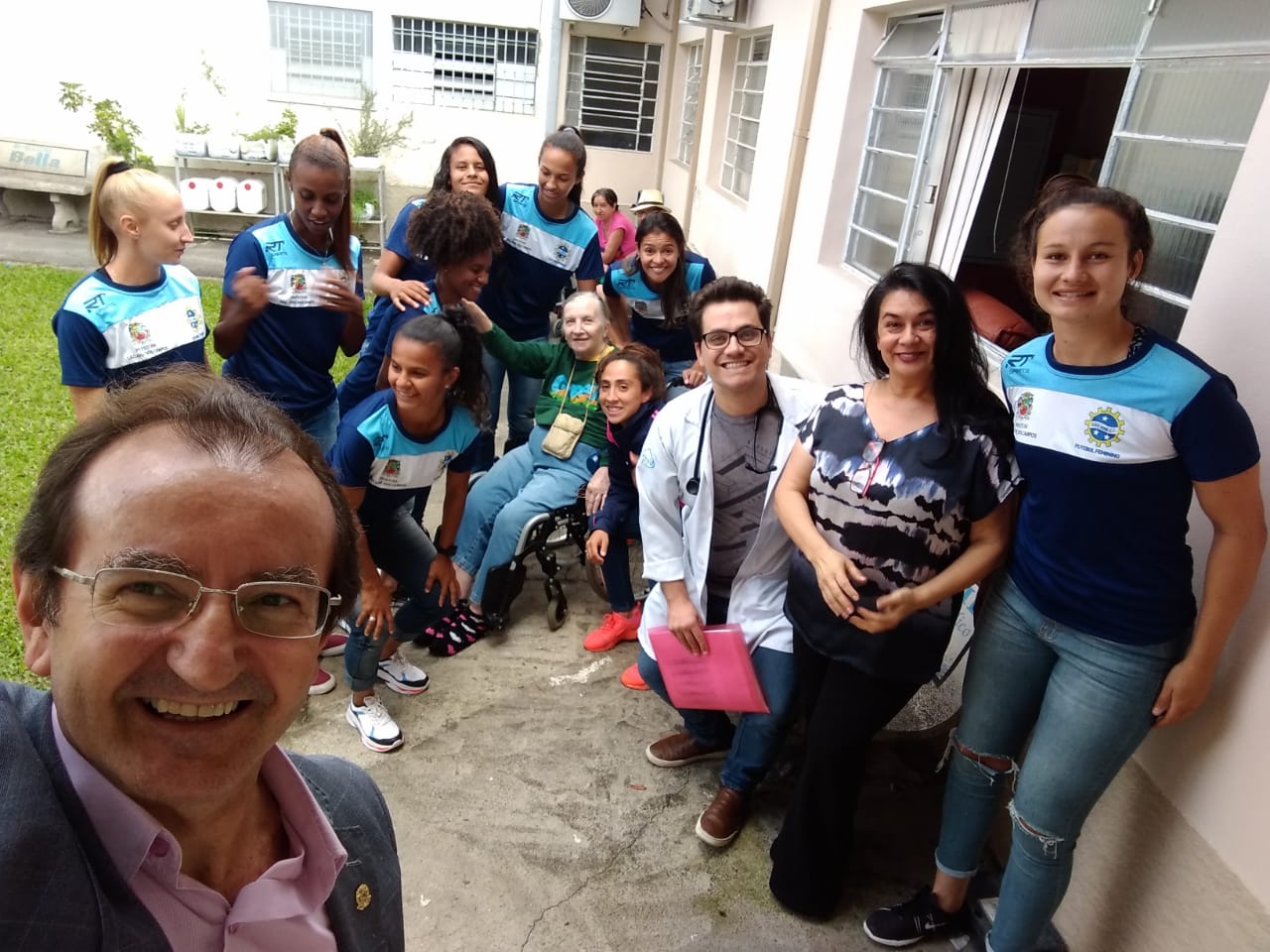 Na tarde da última segunda-feira (17), o conselheiro do CRECISP e diretor do time de futebol feminino São José EC, Agostinho Plaça, levou as jogadoras da equipe conhecida como “Meninas da Águia” para uma visita ao Recanto São João de Deus, na Zona Norte de São José dos Campos. A instituição, que acolhe idosos em situação de vulnerabilidade social, é administrado pelo Instituto das Pequenas Missionárias de Maria Imaculada.