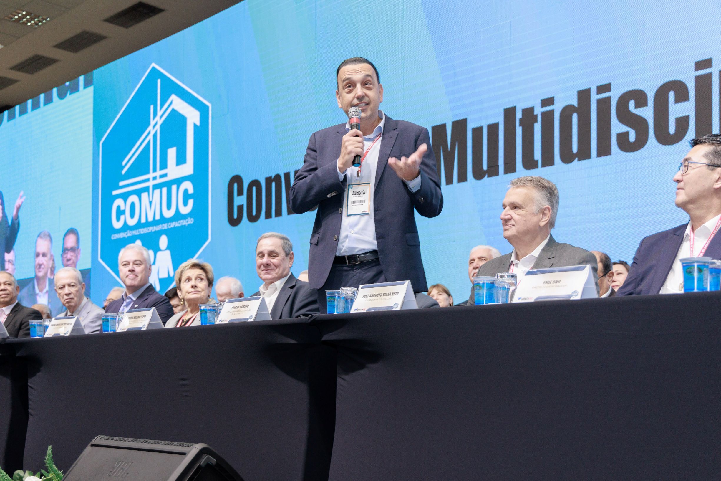 A abertura foi feita pelo vice-governador do Estado, Felício Ramuth, que falou sobre os investimentos e parcerias público-privadas do Governo Estadual em várias áreas de interesse do mercado imobiliário. O prefeito de Atibaia, Emil Ono, o chefe de Gabinete do Conselho Nacional do Sebrae, Ivan Hussni, e o presidente da ABNT, Mario William Esper, também compuseram a mesa ao lado do presidente do CRECISP, José Augusto Viana Neto, e da diretoria do Conselho.