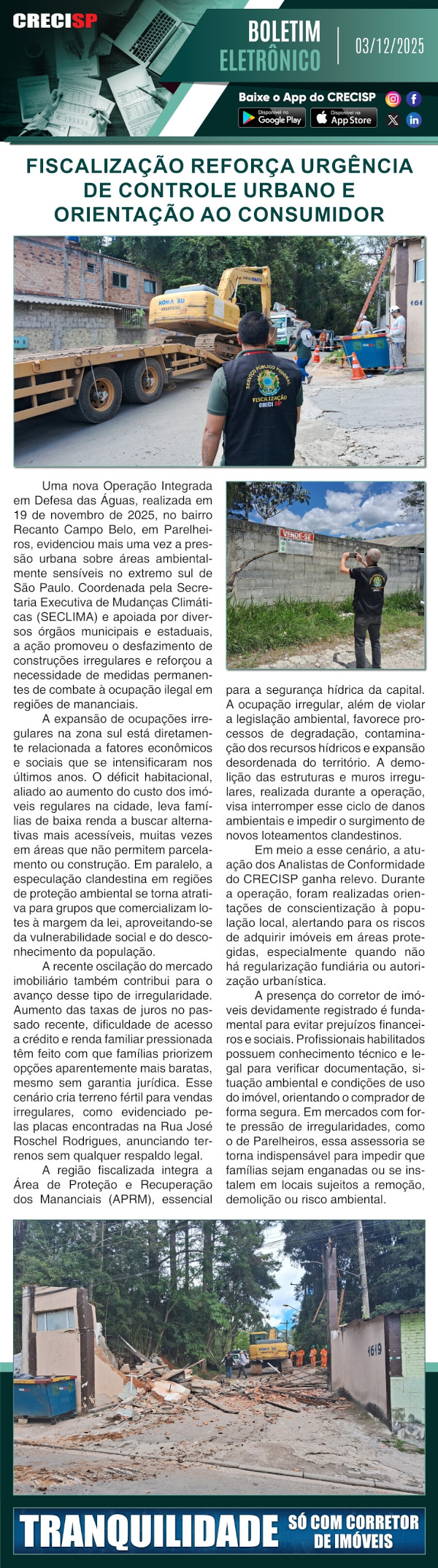 Fiscalização reforça urgência de controle urbano