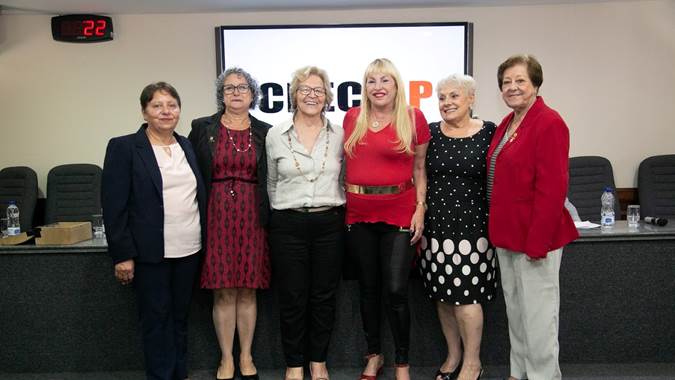 A cerimônia aconteceu no auditório da sede da entidade, onde 93 novas corretoras de imóveis foram recebidas pelas conselheiras Isa Aparecida dos Santos, Valentina Caran, Regina Busnello, Angelita Esnarriaga Viana, Theresinha Serafim e Magali Aparecida dos Santos.