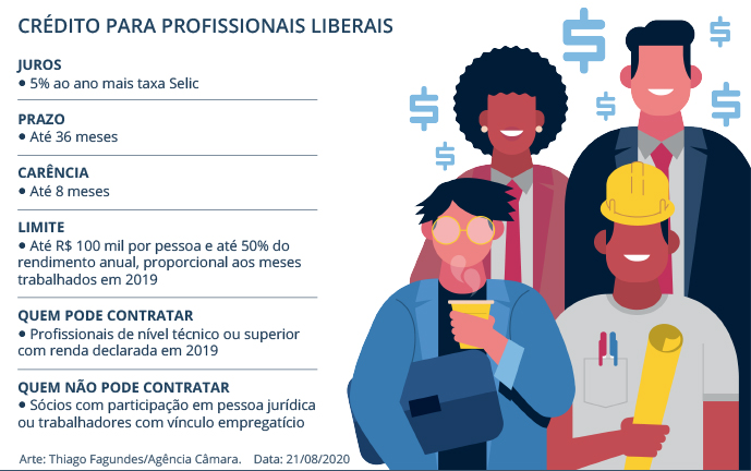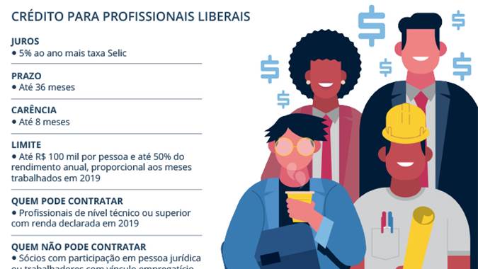A linha de crédito é a do Programa Nacional de Apoio às Microempresas e Empresas de Pequeno Porte (Pronampe), que financia micros e pequenas empresas, mas as condições dos empréstimos serão específicas aos profissionais liberais (veja na tabela abaixo).