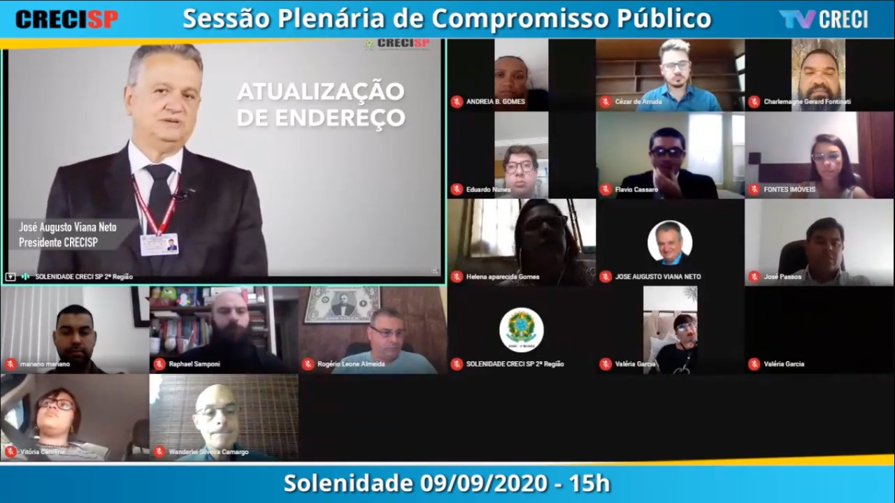 As plenárias foram organizadas em dois períodos, por meio da ferramenta digital, e contemplaram 31 novos corretores. O presidente do Conselho, José Augusto Viana Neto, conduziu os trabalhos, acompanhado pelo vice-presidente, Jaime Tomaz Ramos. Em seu pronunciamento, Viana procurou manter os protocolos estabelecidos nas plenárias presenciais, orientando os novos inscritos a respeito das funções do Conselho, dos cursos e convênios disponíveis e demais questões pertinentes.