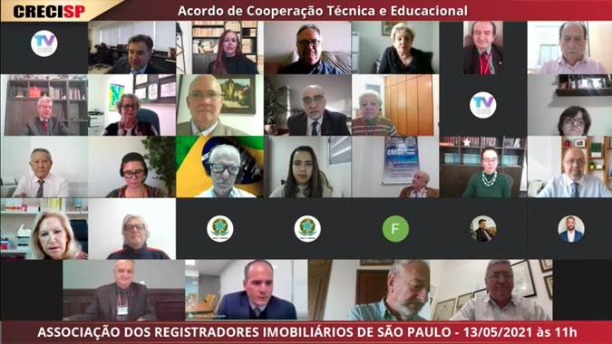 A reunião concretizou o acordo de forma virtual e foi acompanhada por diversos representantes das duas entidades. Ao lado do presidente do CRECISP, José Augusto Viana Neto, firmaram o documento o presidente da Arisp, Flaviano Galhardo, e o reitor da Uniregistral, José Renato Nalini. Também compareceram à sala virtual, da parte do CRECISP, os vice-presidentes, Jaime Tomaz Ramos e Gilberto Yogui; os diretores, Arthur Boiajian e Isaura dos Santos; os conselheiros, Adelino Augusto de Andrade Júnior; Ben-Hur Paes da Silva Junior; Therezinha Serafim; Magali dos Santos; Wagner Artuzo; Bento Guidini; Agostinho Plaça; e o delegado regional de Marília, Hederaldo Joel Benetti. Da Arisp, os diretores, Vinícius Machado; Frederico Assad; os conselheiros, Vanda Antunes da Cruz; Patrícia Ferraz; Ana Carina Pereira; Tício Caldas e o Oficial de Registro de Imóveis de Marília, Luiz Rodrigo Lemmi.